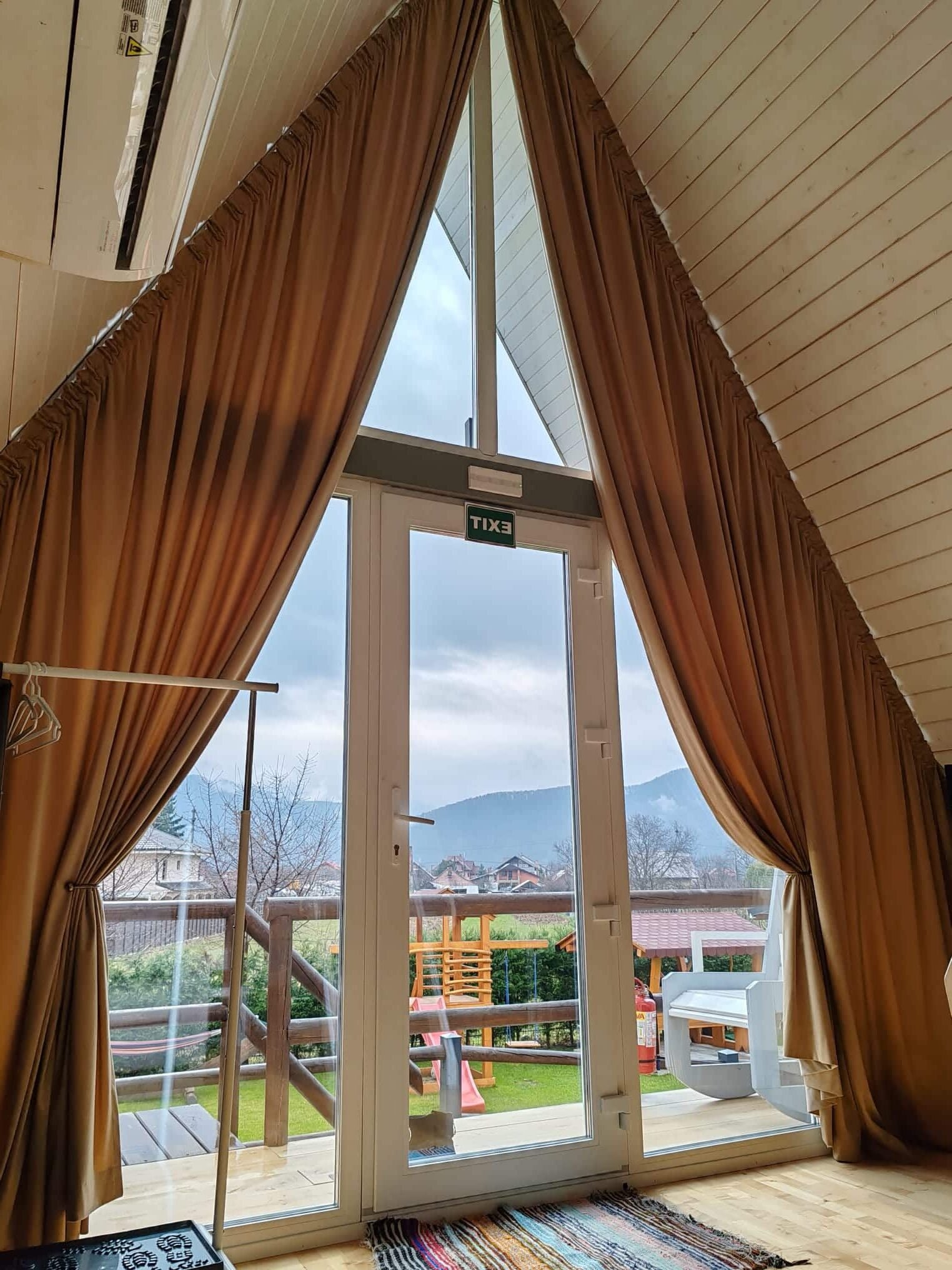 Fiecare căsuță oferă un pat matrimonial confortabil amplasat la etaj pentru a admira apusuri de soare minunate Spațiul de locuit este completat de un mic living cu o masă și patru scaune confortabile, ideale pentru un mic dejun cald în zilele reci, baie proprie, Wi-Fi, televizor, prosoape și alte dotări esențiale